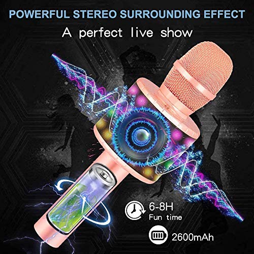 BONAOK Draadloze Bluetooth Karaoke Microfoon met Stuurbare LED-Lampen, Draagbare Karaoke-Machine Luidspreker,Verjaardags…