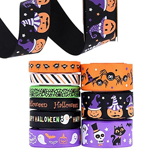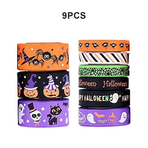 Halloween Wikkellint 4,5 M Bedrade Edge Ghost Pumpkin Spider Grosgrain Gift Lint 9pcs