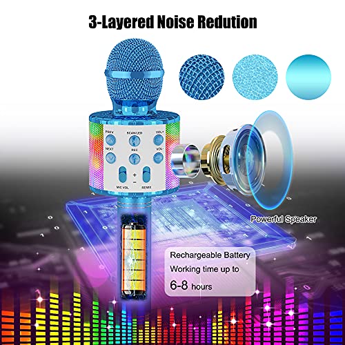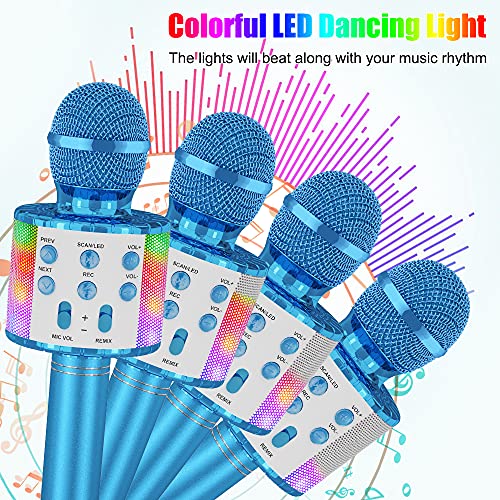 Ankuka Draadloze karaoke-microfoon, Bluetooth 4-in-1, draagbaar, karaoke-speler met ledlampen, dans, voor feestjes, zingen, cadeau-idee voor kinderen Blauw