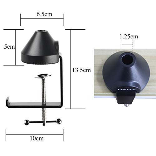 ????【 No.4: Universele compatibiliteit】 LANUCN klemgat heeft een diameter van 1,25 cm. Het is geschikt voor de meeste microfoonstands, schaargiek arm, bureaulamp, tafellamp, enz.