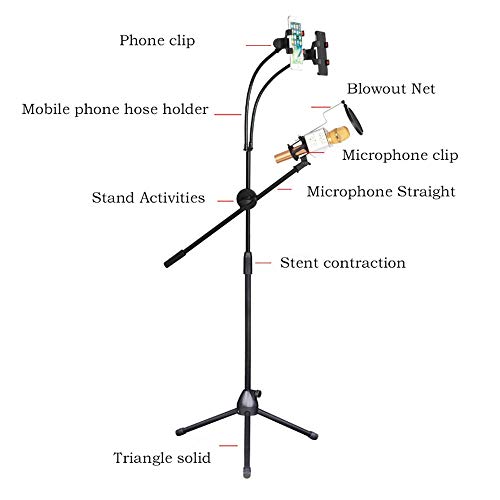 Specificaties: Microfoonstandaard Tripod Boom Dual Mobile Phone Singing Landing Lift Microfoon Levende Stand Instelbaar (Color : Black…