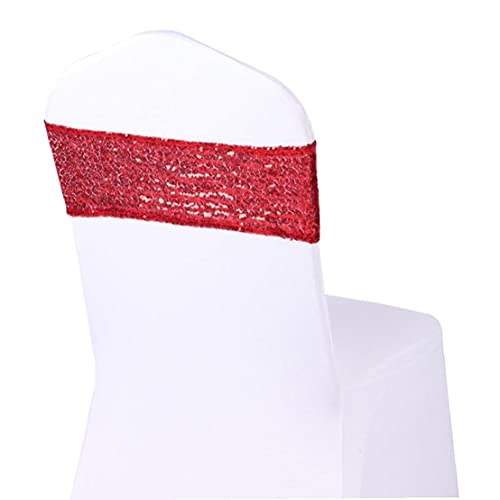 NIDONE Woondecoratie en Sequin Chair Sjeres Bruiloft Stretch Chair Bands Ties Party Chair Decoration Red 10st