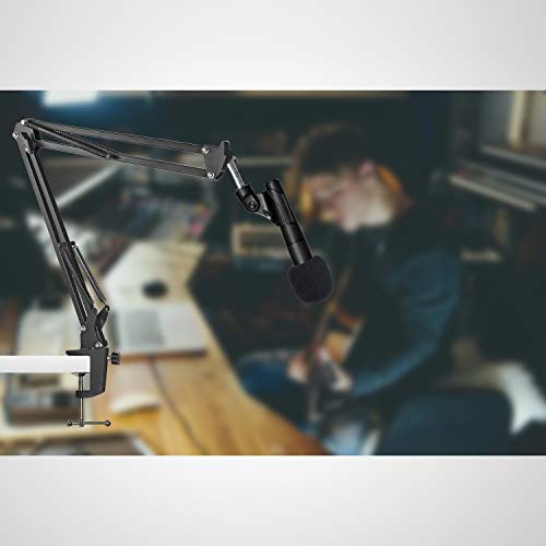 De microfoonstandaard is gebouwd met stevig metaal, dubbele armen en sterke veer en kan voor verschillende omstandigheden worden gebruikt. 180° opvouwbare arm kan in volledige hoek worden versteld.