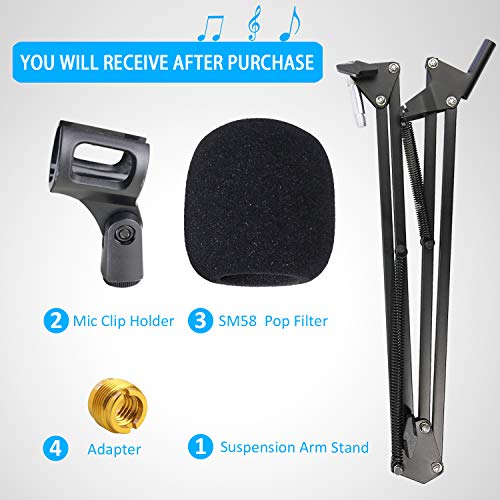 Specificaties: SM58 Microfoonstandaard met popfilter – Microfoonboomarm met windschermafdekking compatibel met Shure SM58S SM58-LC dynamische zangmicrofoon van YOUSHARES