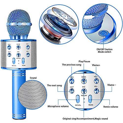 SunTop Karaoke microfoon Bluetooth met 5W luidspreker, draadloze microfoon met dubbele functie voor kinderen en…